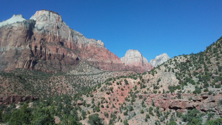 An ingenious person made use of a “toadstool” rock at Cliff Dwellers, AZ and built their house.I defy you to assert that these drawings, based on real Navajo antiquities, are primitive. At Marble Canyon AZThe builder made excellent use of abundant and local natural materials at Lee’s Ferry AZ on the Colorado River.I enjoy the view and cool waters of Lake Powell at Lone Rock Beach near Page AZ.You had to have been there. There’s no way to get a good idea of the scale any other way. It’s BIG. Zion NPAgain, Zion NP. Look very, very closely in the middle and slightly to the right. There are 2 people walking. That’s the scale.Abert Rim in Oregon between Burns and Lakeview. Windless, the lake is a perfect mirror. There are bighorn sheep down there at the water’s edge.Another planet. Not of this world. But it is. Lake Abert ORI had to include this. Maybe it’s why OR has clean roadways. California get a clue.