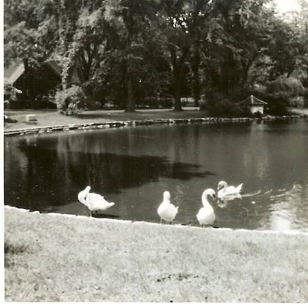 Mom took us to play at the lush and beautifully landscaped Riverview Cemetery a few blocks north of our apartment. It had a decent-sized central lake with a fountain in the middle with big white swans sailing gracefully around. The swans on land were territorial and mean and would chase you to try to peck you if you got too close. So, we kids would taunt them, and they would charge at us all puffed up as we screamed and ran away. There were very big monuments and mausoleums in that cemetery as a tribute and memorial to who I don’t know. Probably the rich and famous of Marshall County. On the northern edge of the cemetery there was a bluff overlooking the Iowa river bottom and flood plain. Standing at the top of the bluff you could see down there, and I always wanted to explore but I never did. It looked like nasty, scary things lived there, and they probably did. Anyway, if you consider muskrats and beavers nasty and scary, then, yeah.