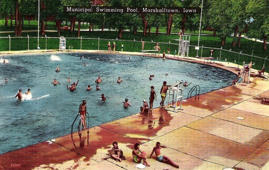 I was not a sporty girl but one thing that stood out was basketball. We had talented players and a great coach in George Funk. Going to the Bobcat games in the new auditorium was thrilling, tantamount to being in Madison Square Garden. The place would be packed to the rafters and the cheerleaders would come out and bounce around doing splits and waving their pom poms and then the team would enter the auditorium by plunging through a paper-covered hoop with a Bobcat painted on it. The energy was palpable, and we yelled our heads off. “Whomp the hobbum, Beat the shobbum, whee whee whee.” Marshalltown was so good that we won the boys’ state basketball tournament 10 times. Pretty soon the tourney was dubbed “the Marshalltown Invitational.” Once a year you were guaranteed to be able to skip school and head to Vets Auditorium in Des Moines for the games.