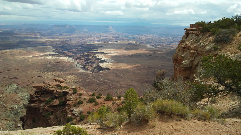I make a big mistake. We drive through a lot of rain to get to Moab and when we arrive it’s dry. We pull into our spectacular first-choice camp site Goose Island on the Colorado River just outside of Moab but it’s full so we go on to the next but it’s too far and we don’t want a repeat of yesterday, so we go back to the first camp. We see a spot that seems to be empty and the guy next door says, “Those people packed up this morning. It was raining and I think they left early.” So even though there’s a receipt for the previous campers still attached to the post we pull in. Marty is leery. He says since it’s raining and we can’t do anything anyway let’s stay and do stuff in the trailer in case they come back. We have a quiet afternoon and even make dinner but at 7 p.m. here they come in their painted up rental van and we have to leave.