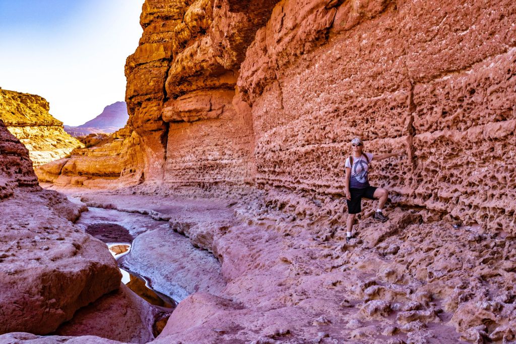 This trip has been good for Marty and me. We’re getting out and getting stronger. We hiked through Cathedral Wash yesterday. It’s more like a slot canyon. It’s our consolation prize for not being able to go to Antelope Canyon, that incredible slot canyon near Page AZ. They said at the exhibit at the beginning that it was not “technical” but I would have been happy with a few carabiners, pitons and ropes. It’s “technical” for an old fart and at one point, which felt like miles down the wash but was probably only a few hundred yards, we had to turn back because it was not sensible for ones such as us to continue. Yet, we did OK. Going downhill was relatively easy. Go slow. Watch where you put your feet. Stop if you want to look around.