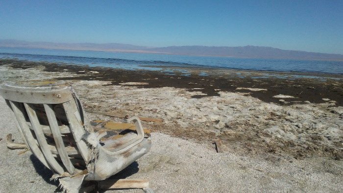 The Salton Sea was a giant mistake created by the California Development Company back in 1905. They built a canal to bring Colorado River water to Imperial Valley farms. When the canal head gates became blocked with silt they made cuts in the river bank but that failed and the entire thousand miles of Colorado River water went spilling into the Valley for two years before they fixed it. The ginormous lake doesn’t have any in or out and very little replenishment from any source so it’s slowly drying up. It’s more salty than the Pacific Ocean.