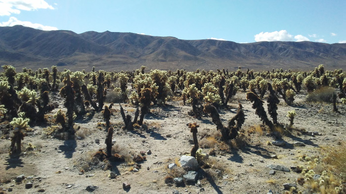 We enter by the south gate. Apparently, this is the Colorado desert part and it isn’t what I expect. No Joshua trees. Just weird leafless ocotillo, vast expanses, angry cholla cactus, shiny creosote bush. I think, “How can anyone ride a horse through this?” The vegetation is absolutely hostile. You’d be picking thorns out of your poor horses legs all the time. The cholla cacti look like strange creatures. Maybe they are the allies from Carlos Castaneda’s book A Yaqui Way of Knowledge. Except he was poking around the Sonora desert with Don Juan the Yaqui brujo. The Sonora desert isn’t too far from here. Maybe 50 miles south. We see a lot of border patrol SUVs during our drive the next day to the…